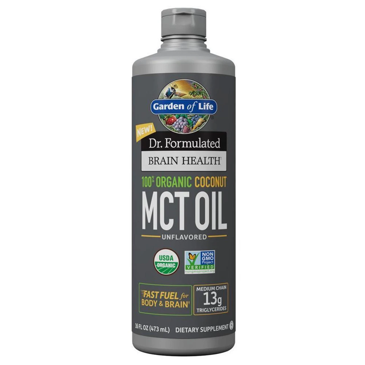 Dr. Formulated Brain Health 100% Organic Coconut MCT Oil from Garden of Life is a certified organic supplement that provides fast fuel for both your brain and body. Packing 13 grams of MCT’s, including caprylic and apric acids, this Keto and Paleo diet friendly supplement makes a great addition to your morning coffee, smoothie, or your favorite juice.Â