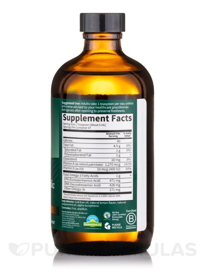 Discover the pure and natural benefits of Olde World Icelandic Cod Liver Oil. Sourced from the cold waters of Iceland and processed using traditional methods, the oil retains its naturally occurring vitamins and essential fatty acids. With over 1,000mg of omega-3 fatty acids and a delicious lemon mint flavor, one teaspoon is all you need to support cardiovascular health, calcium metabolism, and bone development. Trust nature’s richest source of vitamins A and D to keep you healthy and strong.