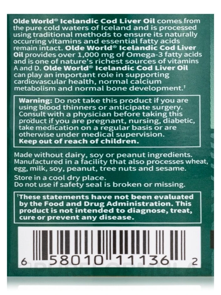 Get the Ultimate Omega-3 Boost with Olde World Icelandic Cod Liver Oil, rich in Vitamins A and D, and sourced from the pristine, icy waters of Iceland.